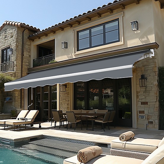 Equipped with heavy-duty steel frames, durable fabrics, and remote or wall switch controls. Available in electric or solar-powered options, and extends up to 24 feet.
